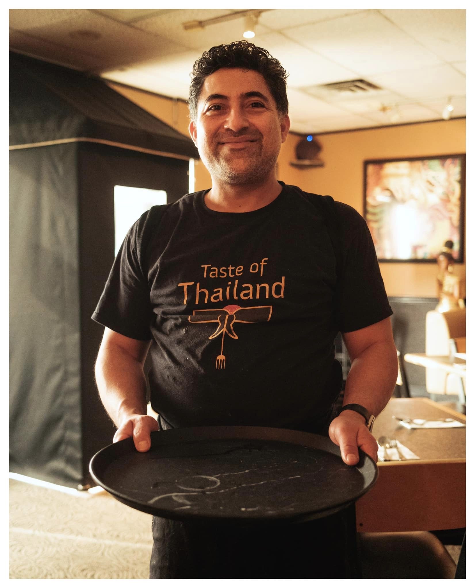 So each week, sometimes multiple times a week, we go to Taste of Thailand (easily the best Thai restaurant in Omaha) for lunch. Here we are served by this man, Farouk, who knows both of our orders by heart. With a big welcoming smile he repeats them to us, just to confirm we haven’t gone off script for some reason, and then gets things going.