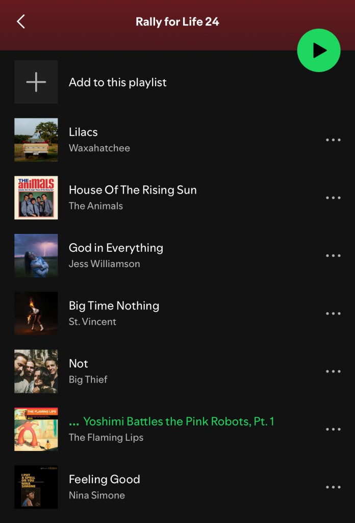 I ran it well, though. I felt good nearly the entire time, excluding a bit of the last mile, which is almost entirely a steady uphill climb. Right at the top of the steepest part of the climb in the third mile “Yoshimi Battles the Pink Robots” started to play in my headphones, exactly when I was hoping it would. I’ve recently been saying, after completing a run or workout I didn’t want to do, that I “battled some Pink Robots.” (There’s all sorts of meaning packed into saying this for me. I wrote recently about seeing the Flaming Lips in concert with my cousin, which was very special for me).